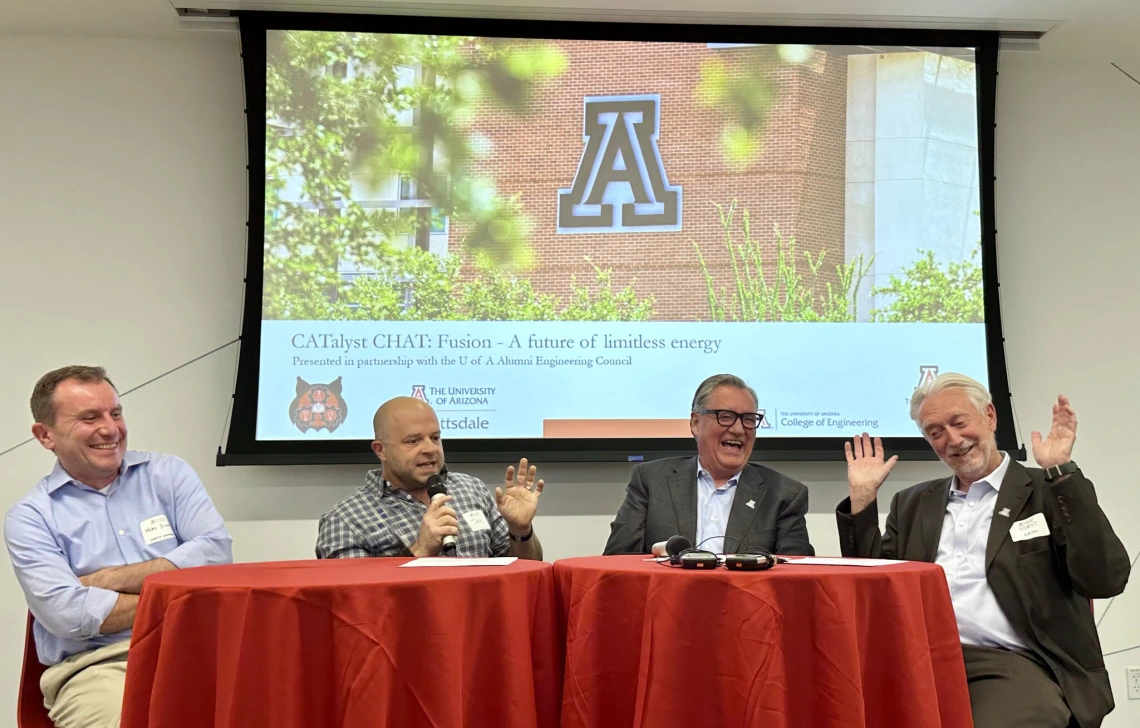 A captive audience of alumni, industry and community members came together for October's CATalyst CHAT to hear from a panel of experts on fusion energy, one of the most ambitious engineering challenges of our time. Facilitated by U of A College of Engineering Craig M. Berge Dean David Hahn, panelists were Senior Vice President for U of A Research & Partnerships Tomás Díaz de la Rubia, Special Advisor Horst Hahn, Inertia CEO Jeff Lawson and Inertia Co-Founder Mike Dunne.